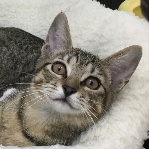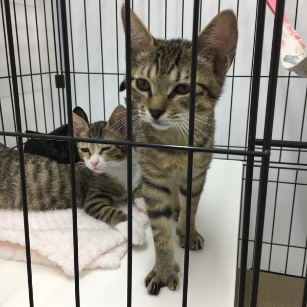 | 特徴(性格など) | キジトラ、まっすぐなしっぽの女の子です。 右の前足の指が先天的なものか一本ありません。 問題なく健康です。 |