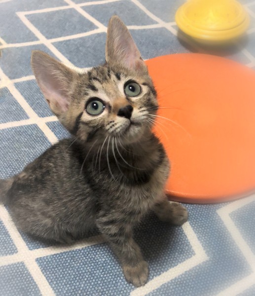 | 特徴(性格など) | 大きな目の甘えん坊・キジ白女の子です。 好奇心旺盛で、初めて目にする物全てが楽しい様子です。 ねこじゃらしを振ると一生懸命捕まえようと追いかけます。 目が合うだけでゴロゴロ撫でると更にゴロゴロの甘えん坊さんです。 ☆キジ白女の子・ひよこまめと姉妹です |