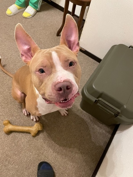 | 特徴(性格など) | 身体は大きいですが、まだまだ、遊びたい盛りの仔犬のような子です。甘噛みします。社会化出来ていない為、外ですれ違う人や犬に激しく反応します。 | ||