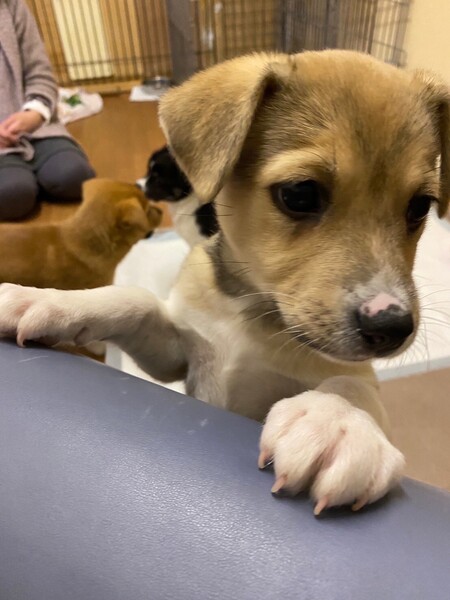 | 特徴(性格など) | 【記載日】2021年10月20日 【仮名】ふじちゃん 【生年月日】2021年8月下旬頃 【種類】MIX 【サイズ】両親は不明ですが将来は中型犬(15kg)以上になると思います。 【毛色】セーブル&ホワイト 【性別】メス 【避妊】未(適正時期に必ずお願いします) 【ワクチン】6種混合ワクチン1回接種済み(10/26) 【駆虫】アドボケート済 【健康状態】食欲もあり元気です 【単身・高齢者】応募不可 【性格】活発で人懐っこい女の子です。姉妹犬の行動を良く観察して学習している様子があります。人が大好きで抱っこやお腹をナデナデしてもらうと嬉しそうにしています。 |