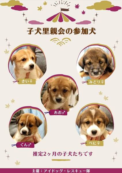 | その他(譲渡条件など) | ⭐️こちらからのご応募は預かりスタッフとのやり取りができないため、必ずアイドッグ・レスキュー隊のアンケートフォームよりお申し込みください ■里親ご応募条件 ・11/13に開催する里親会にお出でいただける方を優先させてください。 ・子犬の為、お留守番の少ない方を希望します。 ・中心となってお世話する方が55歳以下、2人以上のご家庭を希望します。 ・1年以内(2022年10月まで)に、必ず避妊、去勢手術をしてご報告してくださる方。 ■里親さんにお願いしたいこと ・環境の変化で最初の1~2週間はトイレの失敗があるかも知れませんが時間をかけてみてください。 ・環境と人に馴れるまで、大きな心で見守って接してくださる方。 ・毎日散歩をしていただける方。 ・人間が大好きな子なので手をかけていただける方。 ・夏は毎日冷房の配慮していただける方。 ・必ず室内飼いをお願いします(外飼い不可) ■現在の保護場所 千葉県千葉市 ※預かり日記があります。応募前に必ずご覧ください。 預かり日記 「幸せになぁ~れ!」 https://ameblo.jp/ronrenrinburu/ ■応募方法 里親希望の方は、以下のURLに記載してある注意事項・ お願い事項・譲渡条件等をよくお読みになって、 「里親希望アンケートフォーム」からの応募をお願い致します。 お返事には1週間程度のお時間がかかる場合があります。どうぞご理解ください。 ●譲渡に関してのお願い http://aidog.jpn.com/page6.html ●アイドッグ里親希望アンケートフォーム http://ws.formzu.net/fgen/S83312472/ ※固定電話番号は、必ず明記してください。 ※ご質問等ある場合は、フォームの最後の欄にお書き添えください。 ※先着順ではありません。 犬の性格・年齢・病気等を考慮し、多方面から検討して、新しいご家庭を選ばさせていただいています。 ■譲渡までの流れ 里親希望アンケートフォームをいただいた後、 飼養環境等の問題がなければ、ドッグカフェ、里親会他屋内 のお見合い場所のご案内をさせていただきます。 ※立ち会い人がいるため、預り宅の近くとは限りません。 (会場がない場合、公園を指定することもあります。) 犬が保護されている地域まで、ご足労をいただくことになりますが、 どうぞご了承ください。 お見合いして、双方(当会と里親希望者様)で再度検討し、 問題なければ、トライアルへとお話を進めさせていただきます。 トライアル開始時は、ご自宅まで犬を連れてお伺いし、 飼養環境を確認させていただきます。 無事にトライアル期間が終わりましたら、正式譲渡の手続きに入らせて いただきます。 ■受付・管理■ アイドッグ・レスキュー隊 http://aidog.jpn.com/ お問い合わせ aidog.rescue@gmail.com |