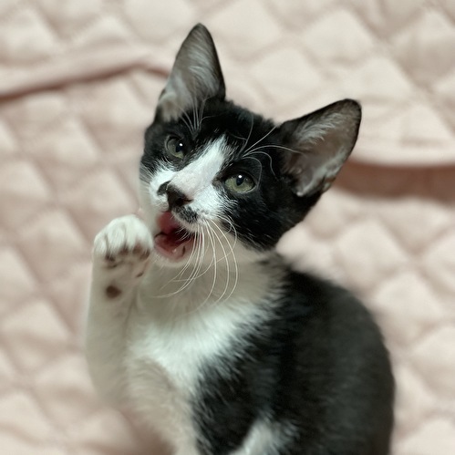 | 特徴(性格など) | 【仮名】モナちゃん 【性格】悪意はなかったのですが産まれて直ぐに 母猫から引き離されてしまいました。 生後2日目よりミルクで育ったため 人を人と思わず猫だと思っているようです(笑) 仕事から戻りソファに座ると胸まで登って来て ゴロゴロ喉を鳴らし喜びます。 チュ~♡をしたり肩や頭にも乗って来ます。 鼻髭もようのため男前に見えますが とてもとても甘えん坊な女の子です^^ 姉妹や同世代のお友達と走り回って元気に遊んでいます。 兄妹や同世代のお友達とのお迎えを希望しています。 ※1匹譲渡不可 |