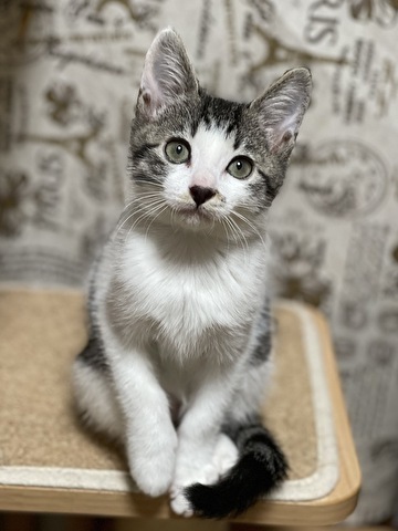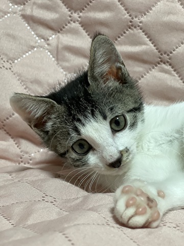 | 特徴(性格など) | 【仮名】モコちゃん 【性格】悪意はなかったのですが産まれて直ぐに 母猫から引き離されてしまいました。 生後2日目よりミルクで育ったため 人を人と思わず猫だと思っているようです(笑) 仕事から戻りソファに座ると胸まで登って来てゴロゴロ喉を鳴らし喜びます。 ストーカーのように動く後を着いて歩きます。 ほんわかな表情の女の子ですが俊敏な動きをすすお転婆さんです^^ 姉妹や同世代のお友達と走り回って元気に遊んでいます。 兄妹や同世代のお友達とのお迎えを希望しています。 ※1匹譲渡不可 |