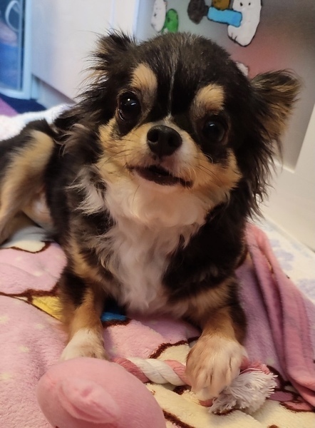| 特徴(性格など) | ■特徴(仮の名前)コニー チワワ♀ブラックタン&ホワイト 推定6~8歳 体重2.5キロ ■性格・暮らし ・無邪気な性格です ・他犬とそつなく暮らせます。 ・お散歩は上手に歩けます。 ・トイレシートの認識はありますが、失敗もあります。 ・人が好きなため、お留守番のほとんどないご家庭を希望します。 ■今までに行った医療行為 ・混合ワクチン接種 ・フィラリア検査(-) ・検便 ・血液検査 ・避妊手術 ・スケーリング ・マイクロチップ |