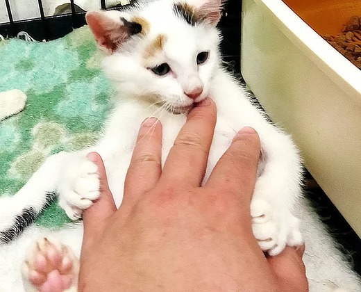 | 特徴(性格など) | きじ白「3s631」は、人間が大好き! 遊ぶのも好きですが、抱っこされるのが特に好き。 小さな、三毛猫の柄を持った個性的なかわいい女の子です。 兄弟の、633とはわずかな柄の違いでまるで双子の様な可愛さです。是非、本館へ遊びに来てください♪ 567、633、636とは兄弟なので、他の猫との社会性も身につき既に猫がいるお宅にもお勧めです。 |