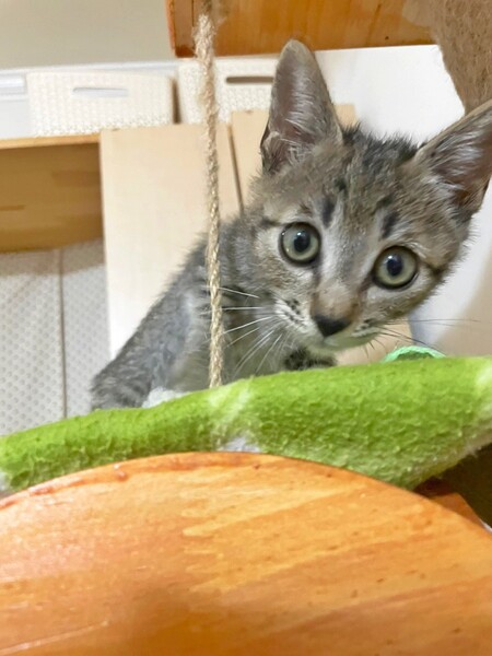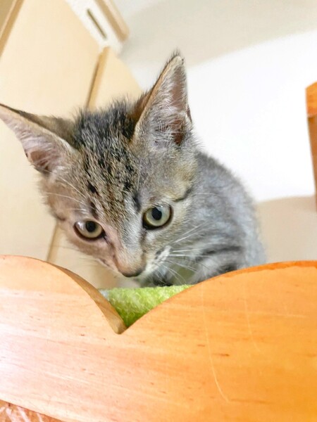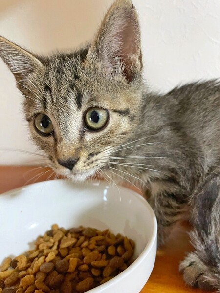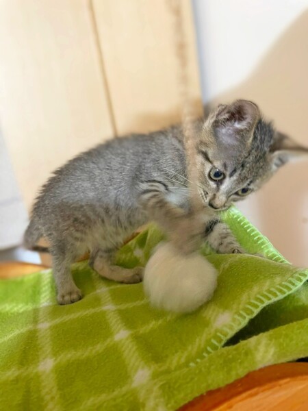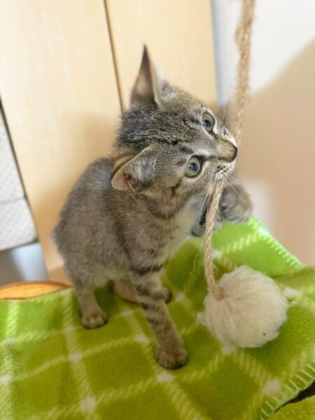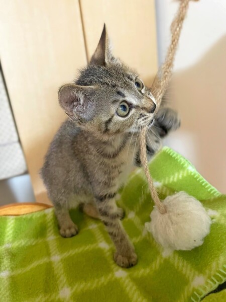 | 特徴(性格など) | 6匹兄妹で保護されました。一匹は力及ばずでしたが、5匹は元気に育っています。 ひまわりくんは兄弟の中でもやんちゃですww 皆、よく食べよく寝て、よく育っています。 キジトラの、かわいいひまわりくんに、ぜひ会いに来てください(^^) ・ノミダニ回虫駆除済み ・エイズ、白血病検査予定 ・3種混合ワクチン接種予定 |