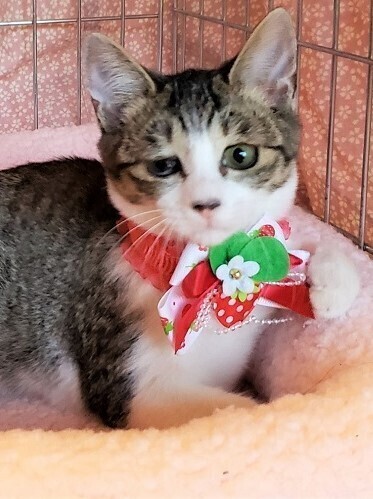 | 里親募集する理由 | 自宅で外猫の世話をしていましたが、出産してしまいました。保護が遅れて、その間に風邪のため片目が白濁してしまいました。母猫は手術をして、引き続きお庭でみてもらっています。 | ||