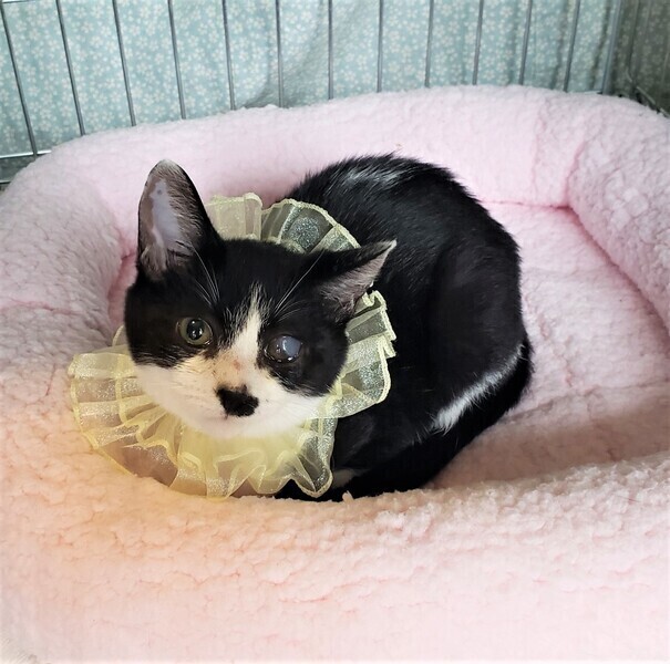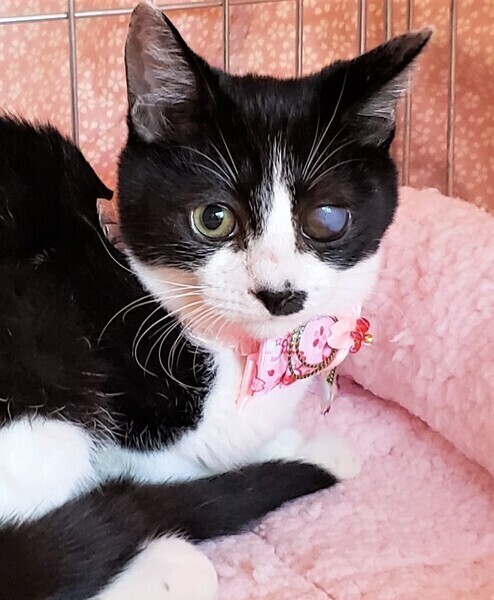 | 里親募集する理由 | 自宅で外猫の世話をしていましたが、出産してしまいました。保護が遅れて、その間に風邪のため片目が白濁してしまいました。母猫は手術をして、引き続きお庭でみてもらっています。 | ||