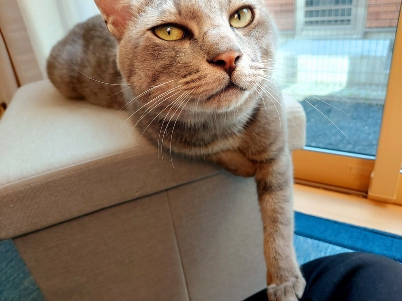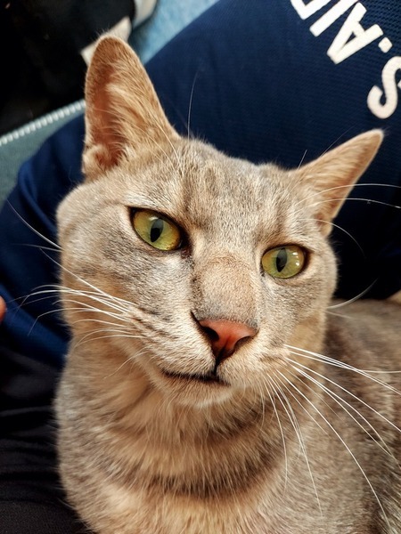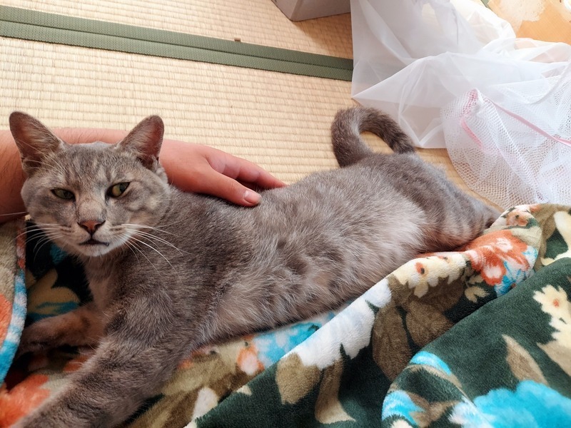 | 特徴(性格など) | 名前はグラ。 灰色の濃いサバトラです。 甘えん坊で、抱っこも嫌がりません。 また臆病な性格でもあるので、テーブルの下やコタツの中などを好んで寝ます。 猫には珍しく、ベッタリの子です。 |