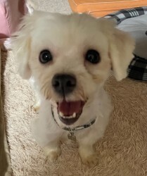 | 特徴(性格など) | ■特徴 (仮名:めい) マルチーズ♀ 推定2歳 体重3.3キロ ■性格・暮らし ・初めは警戒しますが、人は大好きで馴れてくればとても甘えん坊です。 ・他の犬、猫にも初めは警戒しますが、慣れてくれば遊びに誘います。 ・お散歩も大好きで元気に楽しそうに歩いています。 ・お留守番はケージで出来ます。 ・室内でのトイレはトイレシートで出来ます。 ・両足パテラと診断されましたので、日々の体重管理、床の滑り止め対策や激しい運動をしないように等注意が必要です。 ■今までに行った医療行為 ・5種混合ワクチン(10/11) ・マイクロチップ装着(10/11) ・健康チェック(10/11) ・検便(-) ・フィラリア検査(-) ・狂犬病予防接種(11/11) ・血液検査(11/11) ・避妊手術(11/11) ・口腔ケア(11/11) |