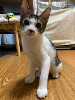 | 特徴(性格など) | 仮名を『くっぱ』と言います。 TNR現場より保護されました。 キジ白の男の仔。 尻尾は、幸運を引っ掛けると言われている鍵しっぽ。 その上先がちょこんと白くて蛍の光のよう。 オシャレ上級者のくっぱです。 遊びモードでは機敏に飛び回っていますが、オフモードになるとゴロゴロ言いながらフミフミしながら夢中へ・・・★ 人見知りはありますが、慣れた環境では他の猫たちとも楽しく過ごせています。 愛らしいくっぱに会いに来てくださいね。 【医療処置情報】これから実施のも含まれます *健康チェック *3種混合ワクチン接種 (年1回定期的にしております。詳細はお見合い時にお知らせいたします) *ウイルス検査実施(FIV.FeLV共に陰性) *検便実施 *駆虫薬投与(レボリューション、ドロンタール) *マイクロチップ装着 *不妊・去勢手術 |