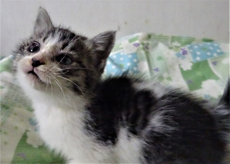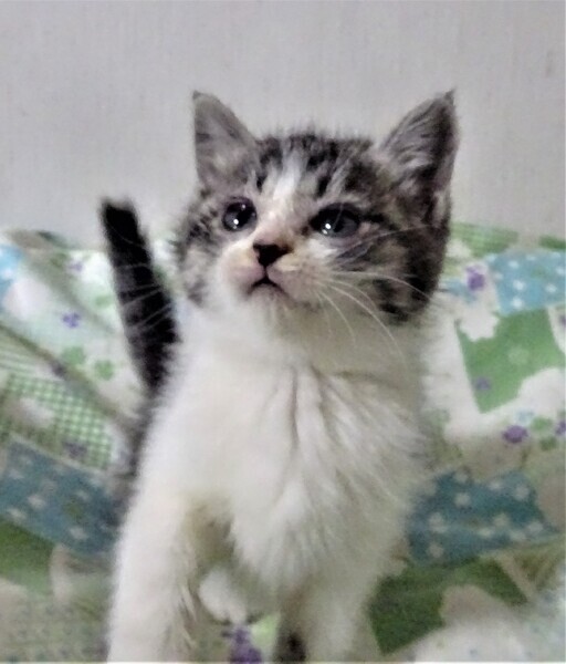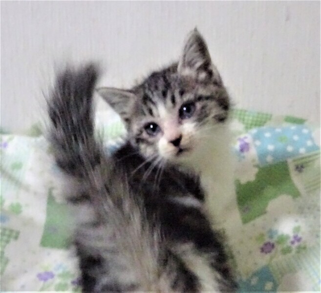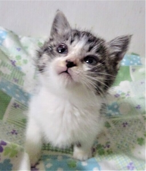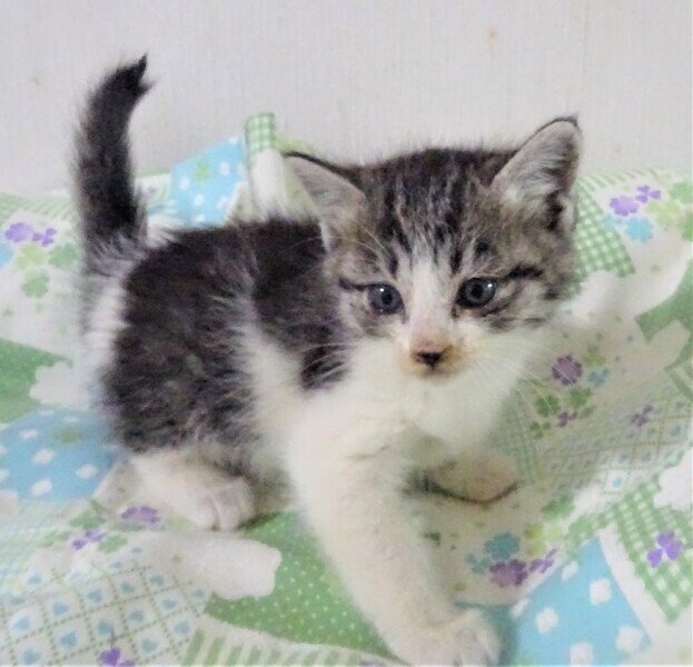 | 特徴(性格など) | 仮名: コニーちゃん(メス) 毛色: キジ白 性格: 保護して日が浅いため、はっきりとした個性はわかりませんが、人を怖がらす、好きみたいで、抱っこすると甘えます。 まだじゃらしのような動きの速い遊びにはついていけませんが、おもちゃで遊んだり、兄妹のアンディ君とプロレスしたりして遊んでいます。人の姿を見て呼んだり、ご飯の催促で鳴いたりしています。 兄弟2匹一緒のご縁があると良いです。子猫ですから暫く見守りが必要です。 留守番時間の短いお家でお願いします。 ノミ取り済 検便済 駆虫済 3種混合ワクチン(11月12日頃接種予定です) 猫エイズ・白血病ウィルス検査はともに陰性 |