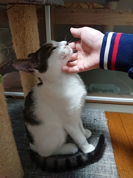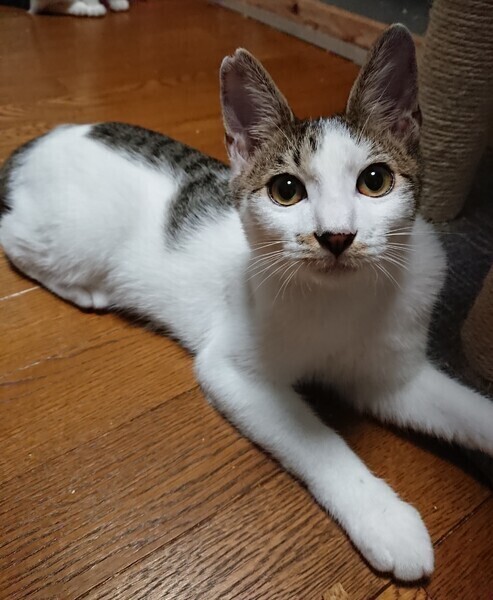 | 里親募集する理由 | 猫が大繁殖してしまった現場にTNR活動で入った際、生後1ヶ月の子猫だったので保護しました。 現場に戻せる状態ではなかったので、養育し里親様を募集することにしました。 我が家にはすでに4匹の猫がおりますので、これ以上飼育は難しいです。 大変ひとなつっこいので、新しいお家や飼い主さんにも慣れてくれると思います。 産まれた時から、餌やりの方にミルクをもらっていたので、人慣れ・猫慣れ問題なし。 すでに離乳して、何でも食べる食いしん坊です。 多頭の中で育ちましたので、保護猫部屋の仲良しと一緒の譲渡が条件です。 現在、茶トラ(オス)と仲良しです。 |