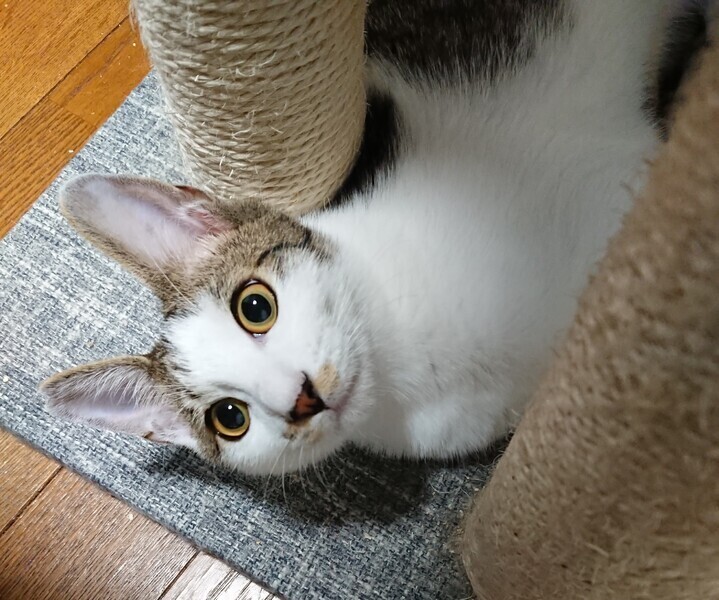 | 特徴(性格など) | 好奇心旺盛で活発! でも、デレデレの甘えん坊。はやくナデナデして~~の催促が可愛 い。追いかけっこ大好き。 6匹きょうだいという多頭の中で育ちました。 とにかく人見知りは全くしません。 最初から、遊んでの催促があると思います。 |