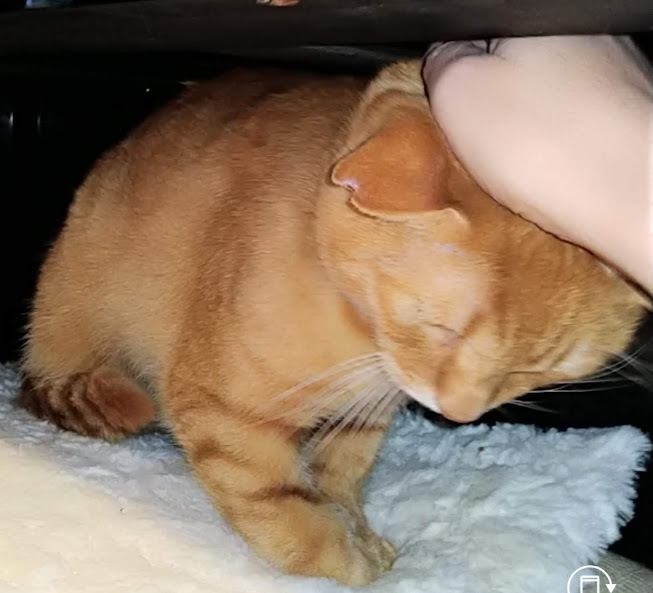 | 特徴(性格など) | 茶トラの小柄な男の子です。おうち猫修行中なのですが、かなりナデナデさせてくれます。 フワフワ柔らかな毛並みがたまりません。 怖いと固まって我慢する大人しい性格です。うちの飼い猫オス2匹に友好的です。 病院では、年齢はアダルト枠で4-7才に分類されましたので、正確な年齢は不明です。 登録は中間を取って5才としました。 インスタで最新のテンちゃんを見ていただけます。"tenten10hogoneko" ・体重3.8kg ・ワクチン接種済み、去勢手術済み ・エイズ 猫白血病 共に陰性 ・ノミダニ駆除済み ・保護時に頬と後ろ脚の肉球に外傷がありましたが、治療済み |