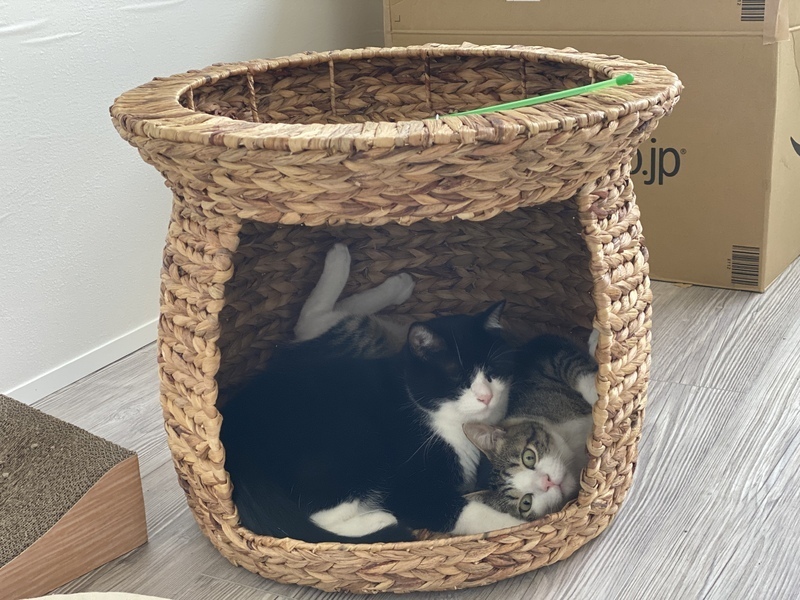 | 特徴(性格など) | ハチワレ白黒:オス 怖がり(音に敏感)、人見知り、おもちゃ大好き、食いしん坊 キジ柄:オス 怖がり(音に敏感)、人見知り、ブラッシングが好き、おもちゃにはあまり関心なし、少し甘えん坊 元々は野良猫で、生まれた時から2匹は一緒にいる兄弟のような存在でとても仲良しです。 ハチワレがお兄ちゃん的な存在で、キジ柄は弟のような性格です。 ご飯を食べる時もハチワレが必ず先に食べます。おやつをあげる時は見守ってあげないとハチワレが全部食べてしまいます。 最初は懐くか心配になるほど近寄ってくれませんでしたが、3年間一緒に住んで私には慣れてくれて、抱っことまでは行きませんが、近くで寝てくれたり、スリスリしてくれたりします。自分よりも大きな人や物にとても怖がりですが威嚇したりすることはありません。 |