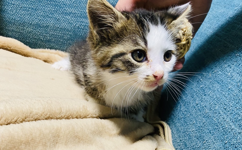 | 特徴(性格など) | ハチワレ型のキジシロで尻尾がほんの少ししかありません。 人慣れ抜群で、寂しがり屋のすごく甘えん坊です。 |