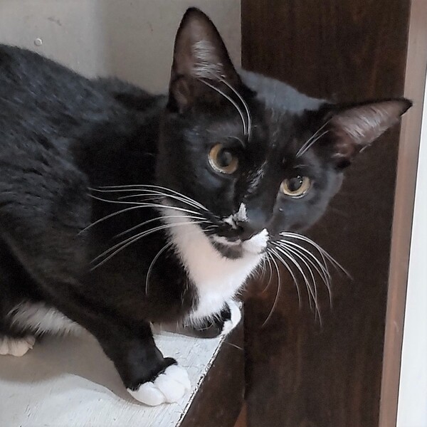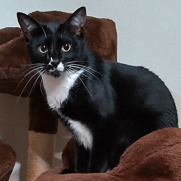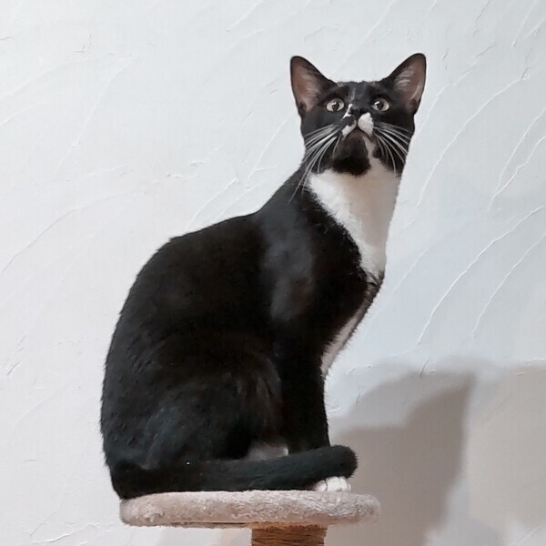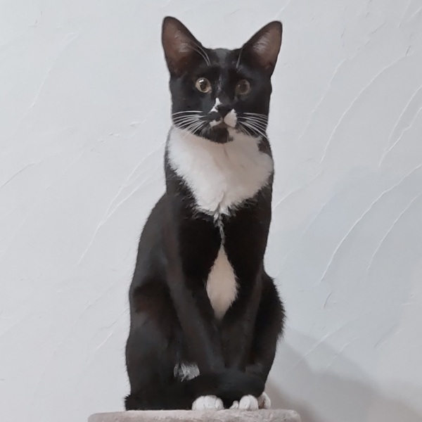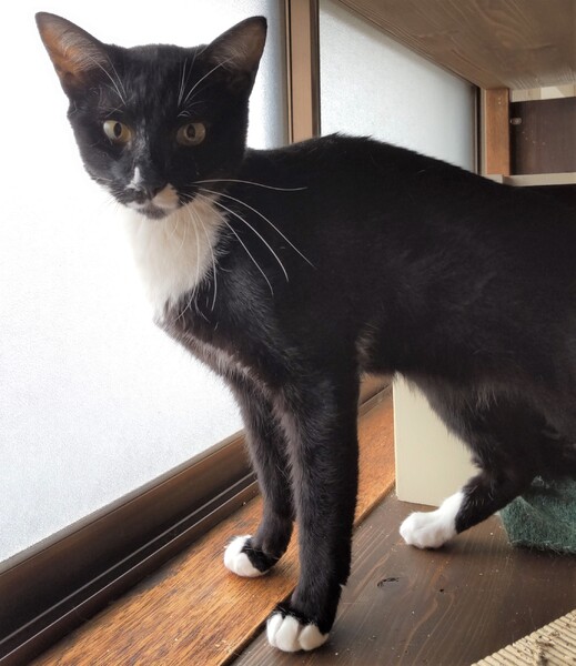 | 特徴(性格など) | 仮名:ヨン 毛色:黒白 瞳の色:茶色 尻尾:長くて先が少~しカーブしています。 性格・特徴:フリル襟のブラウスにカーディガンを羽織ったような個性的な柄。 手足も尻尾もとても長く優雅で、キリっとした顔立ちは王子様のようです。 ママ猫と一緒に保護されているせいもあり、なかなか懐かなかった3兄妹。 威嚇、ひっかき、嚙みつきのオンパレードでしたが、保護から半年の間にだんだんと触れるようになっていきました。 基本的にいつもクールで自分から甘えてくることはありませんが、ご飯の準備をしていると足にスリスリしてくることもあり、そんな時は撫でるとうれしそうにしてくれます。 じゃれている時だけは爪を立てたり噛んだりすることはありますが、遊びの延長なだけで、充分に手加減してくれています。 ママに限らず大人猫が大好きで、ウザがられてもスリスリ寄っていくのがとてもかわいらしいです。 とてもビビりなところがあるので、仲がいい子と2匹での譲渡を希望します。 システムトイレも固まる砂のトイレも失敗なく使っています。 健康状態:保護後1か月の検査で猫白血病、猫免疫不全ウイルスともに陰性でした。 ノミ・ダニ・お腹の虫の駆除済み。 |