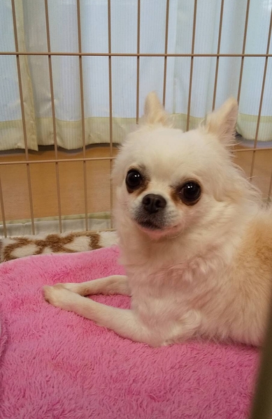 | 特徴(性格など) | ロングコートチワワ 色:クリーム 名前は、ラナちゃん 体重 2.5kg ワクチン 接種済み レボリューション 済み フィラリア 陰性 心雑音 問題なし パテラ 問題なし 避妊手術 済み ※小さなお子さまの居ないご家庭を希望します 8月に保護してから慣れるまで2ヶ月かかりました。 やっと心開いてくれて抱っこ出来るようになりました。 他の犬ともフレンドリーです。 小さい子供さんには吠えると思います。 ペットショップで買い一般家庭で飼われていましたが、家庭の事情で飼育が難しくなったとの事で保護しました。 マイクロチップ入っています。 |
