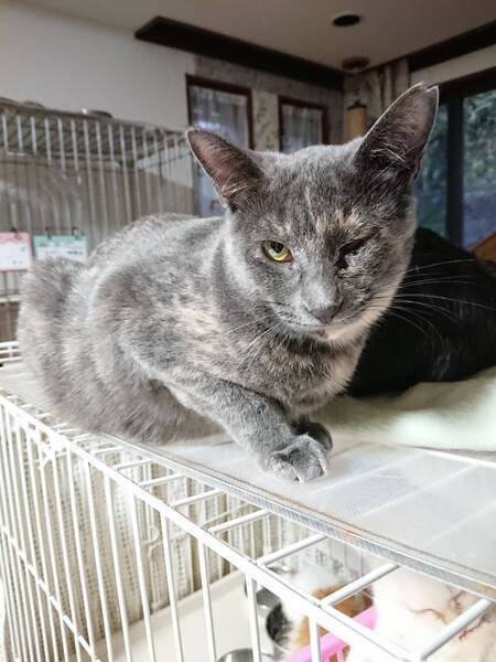| 特徴(性格など) | ◆アグスタちゃん 猫と仲良しなグレーサビの女の子 ○神奈川県内にて保護されました。 ○推定6歳くらい(2024年12月時点)のグレーサビの女の子です。体重は4.1kgです(2024年11月8日時点)。 ○尻尾は先が少し曲がっているようです。 ○出産経験ありのお母さん猫。 ○左目緑内障ですが、今のところ日常生活には支障ありません。 ○見た目かっこいい系女子だけど、中身はびびりさんなギャップを持ち合わせてます。 ○まだ人にはびびってしまいますが、猫たちとの関係は良好です。 〇猫エイズ陽性(キャリア)ですが、現時点では発症しておらず、健康な猫とかわりません。元気に過ごしています。 ☆『猫エイズウイルス』陽性の猫は敬遠されることがたびたび。でも、本当はそんなに怖くない病気です。 猫エイズウイルス陽性の子も、ハッピーに暮らせます。 ★ワクチン済み、不妊手術済み。 ★猫エイズ陽性、猫白血病陰性。 ★左目緑内障ですが、今のところ日常生活には支障ありません。 ☆単身のかたはご相談ください。 ★★お見合いを設定することも可能です。まずはお申込みください★★ |