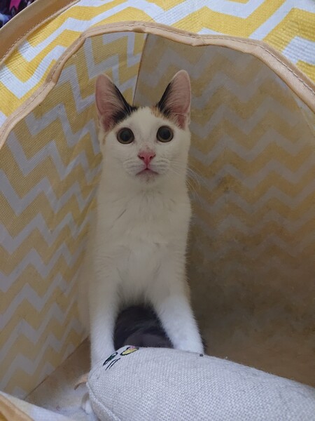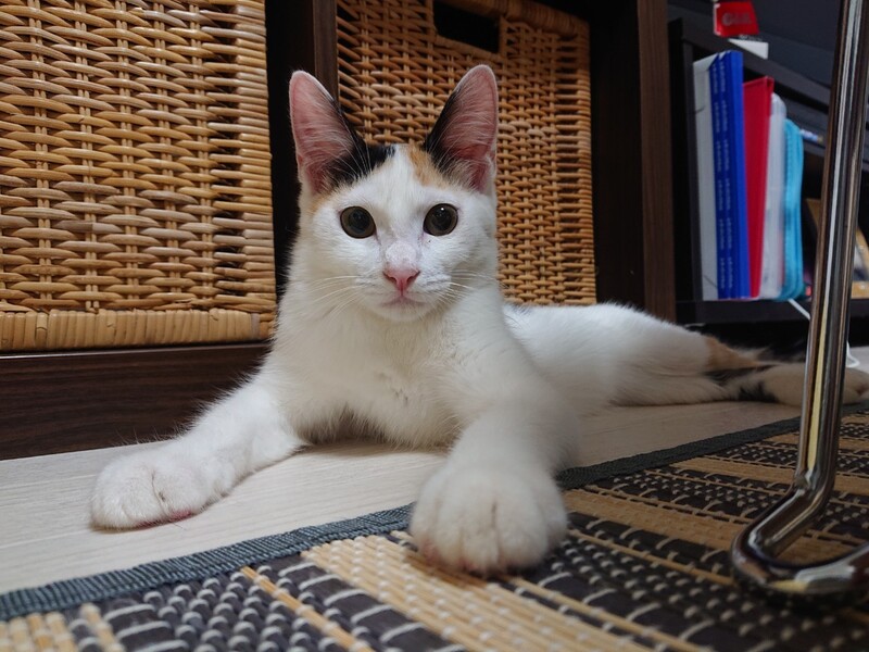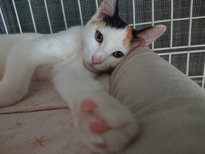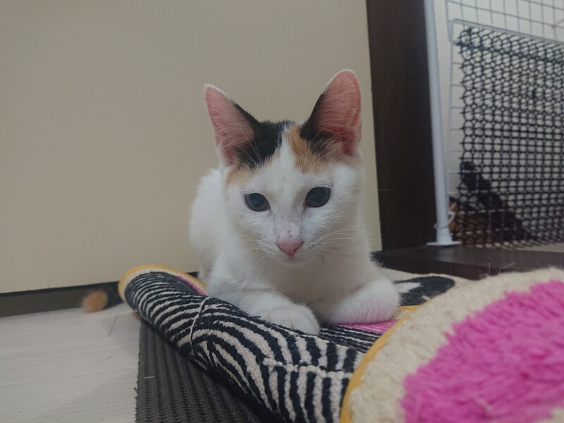 | 特徴(性格など) | 2021.4.6生まれ(推定) 毛色:三毛 ハチワレっぽい前髪がかわいい 三毛猫 まつり 白多めのボディはとっても艶やか。撫で心地抜群です!! スラリと長いしましまシッポは、少し毛足が長くてフワフワしています♡ ビビリさんなので 姉妹のはなびの後ろに隠れがち。 ビクビクしちゃうけど、撫でると大きくゴロゴロを聞かせてくれます。 遊ぶの大好き!好奇心旺盛な元気いっぱいの女の子です。 オモチャにはおめめを真ん丸にして、率先して飛びつきます♪ 猫には積極的で、みんなと仲良くなれるタイプです☆ ゆっくりと、まつりのペースに合わせてくださるような里親様と 出会えたら嬉しいです!! |