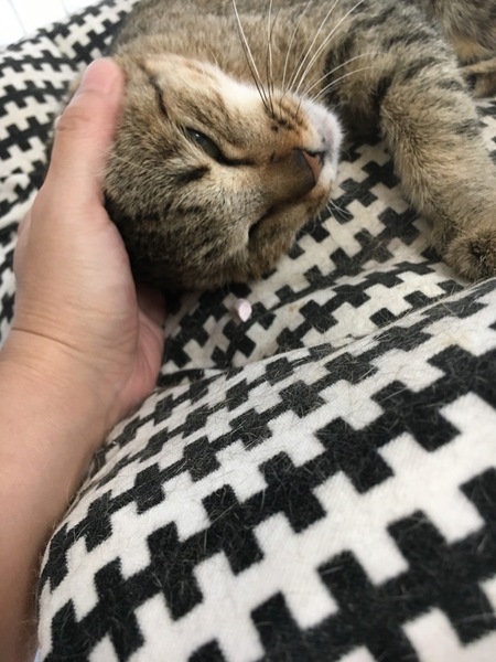 | 特徴(性格など) | キジトラ柄です。足の裏が真っ黒なところもキュートです。 人懐こい性格で、すりすりしたり、お膝の上に乗るのも大好きです。 人間にくっついているのが好きなようです。 |