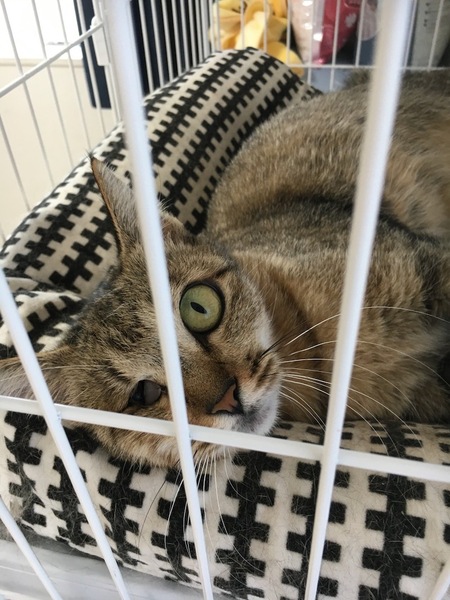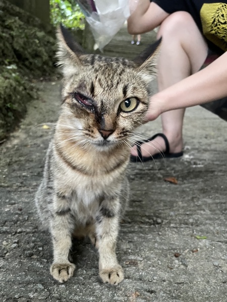 | 里親募集する理由 | 雑種・推定2歳の♀ 白血病、エイズ陰性 ワクチン一回済み 避妊済み 私がこの猫ちゃんと出会ったのは8月上旬。 きっかけは友人のSNSでした。 アップされた写真には、浜比嘉島のシルミチュー霊場付近がゴミだらけになっている様子が。 聖なる場所がこんな風になっているのは良くないことと思い、その翌日にゴミ拾いへ。 シルミチューさんにまずはお参りをしようと森の中へ足を踏み入れると、 そこには片目のない、小柄な猫ちゃんがいました。 餌が欲しいのか、か細い声で鳴いていて… 片目はないけど、お顔はとっても可愛い。 体も小さく…満足に食事していないのかも?と思いました。 それから何度か、ゴミ拾いのためにシルミチューさんを訪れるたびに 猫ちゃんにも遭遇しました。 餌をあげて、顔をよく観察していたら… 目は膿が多いだけで、眼球はちゃんとあることが判明。 この子は治療したら目も良くなるかもしれないし、里親さんを見つけてあげよう。 そう思い、保護用の物品を揃え、また猫好きの友人たちとカンパしあって保護のための資金も集めました。 そして数日後にシルミチューさんに向かったところ…猫ちゃんはいなくなってしました。 一時的なものだ、きっと別の日に行けば見つかるはず。 そう思い別の日に行っても、おらず… もしかしたら時間帯で居場所を変えているのかも?と思い、 時間を変えても、見当たらない… 猫ちゃんを捜索して十数日が経った頃、沖縄では緊急事態がさらに延長され、 8月下旬、シルミチュー近辺は完全に閉鎖されてしまいました。 私はその日、シルミチュー霊場、ビーチが閉鎖されるその瞬間に車を現場に駐車しようとしていました。 なぜか駐車場には警察官。事件でもあったのか…?と思いつつ車を停めていると 「この駐車場とビーチは今から閉鎖して、緊急事態宣言が解けるまでは入れません」 と告げられました。 私は警察の方に事情を説明し、その場にいた浜比嘉島の区長さんにも中を探させてもらえないかと頼みました。 すると、近隣の方を呼んでいただき、似ている猫がいないか写真を見ていただけることに。 しかし、見たことがないと…。 どうしたらいいんだろうと思い悩む私に、近隣の方が、 ここの駐車場が閉鎖されたらうちに駐車していいよ、と申し出てくださいました。 お言葉に甘え、翌日からはそちらに駐車して捜索を続けました。 島中に張り紙をして、区長さんや近隣の方、 アマミチューでもずくを売っているくみこさんなどいろんな人が協力してくれているのに、猫ちゃんは見つからない。 片目を怪我していたし、感染症などでもう息絶えてしまったのか… それとも、私のように、この猫ちゃんを可哀想だと思った方が、連れて行ったのだろうか…? 県内の動物病院や、犬猫の保護団体、施設など方々に連絡しましたが、やはり見つかりません。 先の見えないまま、それでも諦めずに、1ヶ月半探し続けたある日のこと。 その日私はいつものようにシルミチューさんにお参りをし、猫ちゃんを探した後、 アマミチューへ向かい、もずくを売っているくみこさんのお店でコーヒーを飲んでいました。 そしてたまたま居合わせた方と、くみこさんとの3人で記念写真を撮りました。 家に帰って、ふと、あの人の連絡先を聞いておけばよかったな。 記念写真をネットにアップしていないだろうか? と、Twitterで「浜比嘉島」でなんとなく検索をしたのです。 それより以前にも、 「猫ちゃんを保護した人が、TwitterやFBに情報をあげていないだろうか?」 と探したことがありました。 その時は、何の情報も得られず…。 本当に、なんの気なしにとった行動だったのです。 検索結果を辿っているとそこには、あの猫ちゃんがお家の中にいる写真が! よく文章を読んでみると、私が探していた時期に保護してくださっていた方のようでした。 先住猫ちゃんたちと折り合いが悪く、部屋を一匹で独占していると。 まず、無事でよかった。本当によかった。安堵の気持ちでいっぱいになりました。 そして連絡を取り事情を説明、もしも先住猫ちゃんとの相性が悪いのであれば、 こちらで保護させていただけませんか?とお話ししました。 先に保護してくださっていた方は、しっかりと検査などもしてくださっていて、 おうちで既に6匹の猫ちゃんを野良から保護して飼っている素晴らしい方です。 海沿いにいる猫ちゃんをTNRしたり、長年そうした保護活動を個人で地道にしてくださっています。 現在、この浜比嘉島の猫ちゃんは仮名「ミチュー」とし、我が家で療養しています。 片目はもう視力が戻らないようですが、炎症もなく、そのままで大丈夫と言われています。 まるで眼球が凹んだようになっていて、猫同士の喧嘩ではない。 石などぶつけられたか、殴られたか…とお医者さんはおっしゃっていたそうです。 体は小柄ですが体重3.5kg。お膝に乗るのが大好きな、甘えん坊の女の子です。 今月末に避妊手術を控えており、そ