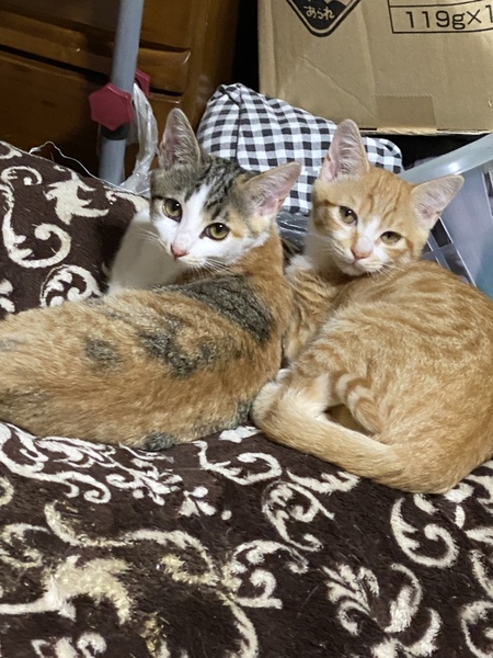 | 特徴(性格など) | ふわふわの茶トラの女の子と 三毛猫の女の子 性格は三毛猫さんは若干人見知り ですがとても元気でよく食べる子です |