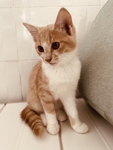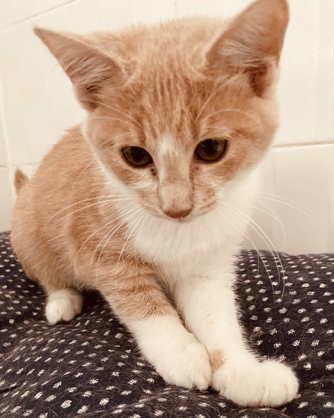 | 特徴(性格など) | 薄いチャトラの3ヶ月の女の子。おっとりとして優しい子です。いつも可愛い声で甘えてきます。抱っことナデナデOKです! | ||