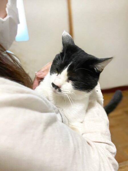 | 特徴(性格など) | はっちゃん、人が大好きな女の子です。人が近づくと、待ってましたとばかりにゴロゴロスリスリ してきますww なのでボランティアさんにも大人気のはっちゃんです♪ ゴハンもよく食べ元気に過ごしています。 そんなはっちゃんですが、ウイルス検査で白血病キャリアと診断されました。白血病といえども、 室内でストレスなく生活すれば発症せずに生きられる子もいます。 同じ白血病の先住猫がいる方、はっちゃんを一匹だけで飼ってくれる方を募集します。 単身者の方、シニアの方のご応募もお待ちしています。 どうかはっちゃんをよろしくお願いいたします。 |