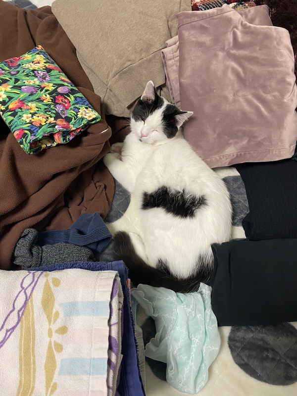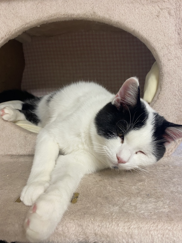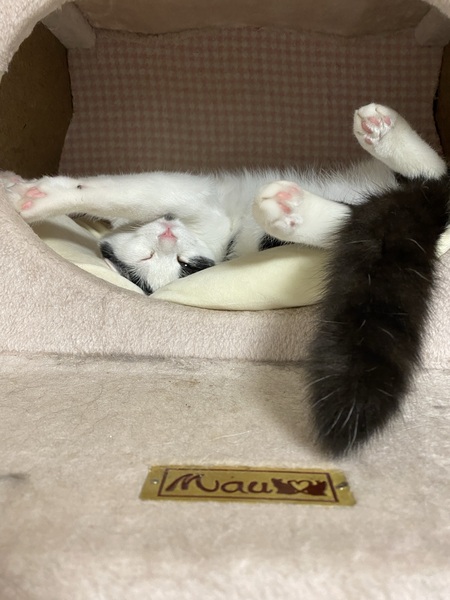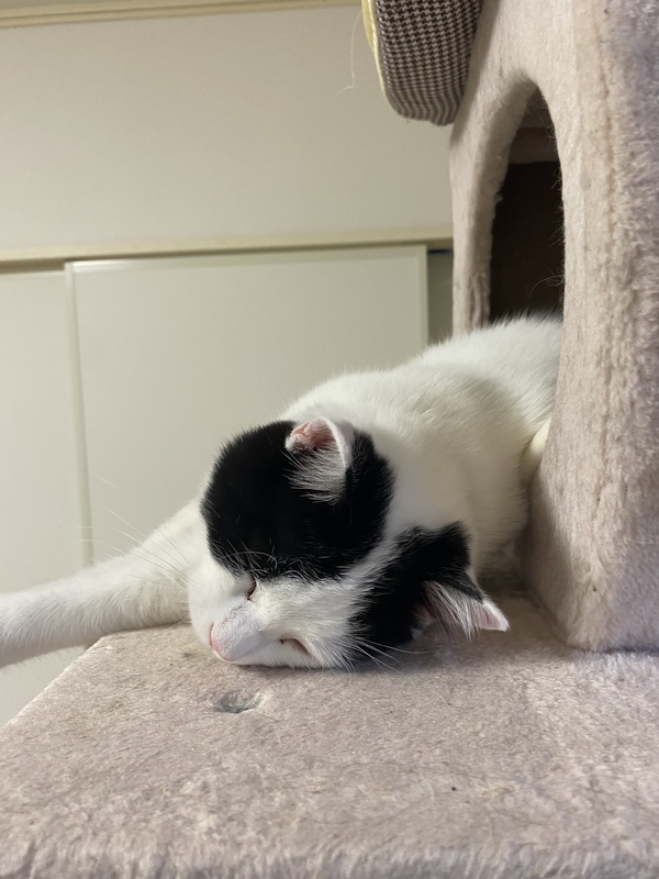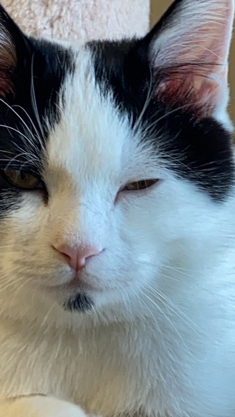 | 特徴(性格など) | 白黒ハチワレ猫です。 性格は、甘えん坊で人懐っこいです。 |