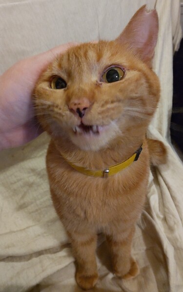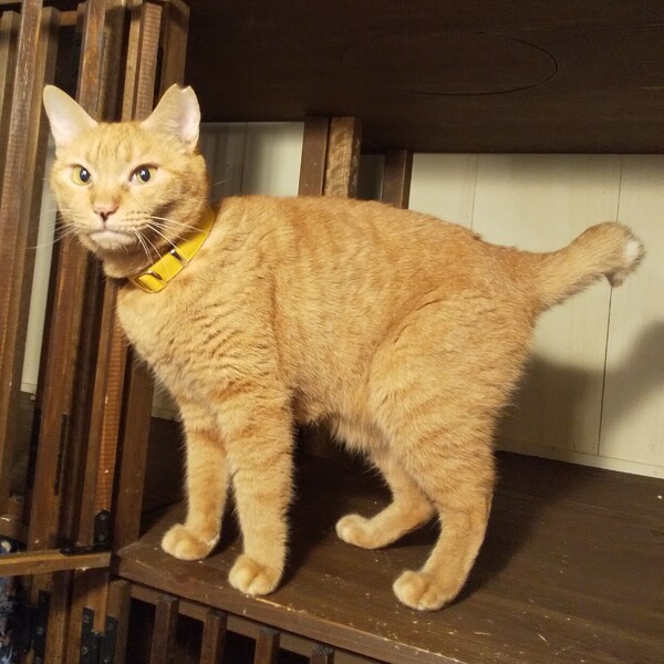 | 特徴(性格など) | 仮名:こと 毛色:あまりいないといわれている茶トラの女の子です。(今回の多頭崩壊宅には何匹かいますが) 瞳の色:薄い茶色 尻尾:中ぐらいの長さのカギ尻尾 性格・特徴:元の飼い主から7歳と聞いていますが、医師の見立てでは3~5歳に見えるとのことでした。 歯が健康で全体的に若々しく感じられます。 シジミ貝のような形のつぶらなおめめがチャームポイント。 お鼻と唇に茶色いポイントがあります。 人が大好きで、撫でるととても喜びます。 構ってほしくて必死に鳴くと、とても怖い顔になってしまうところがとてもかわいくていじらしいです。 撫でるとすぐに鳴きやみますが、今の保護下では鳴いても毎回は構ってあげられません。 1日も早く、温かい家族が見つかることを願っています。 遠慮せずに思いっきり甘えられるよう、お留守番が少なく2人暮らし以上のご家庭を希望します。 これまで劣悪な環境で辛い思いをしてきた分、愛情たっぷりに育ててください。 他の猫も大好きで、誰とでも仲良くできます。 ケンカを売ってくるような子には近づかないという要領の良さもある逞しい子です。 やさしい先住猫なら時間をかけて仲良くなれると思いますが、同じ多頭崩壊宅から来た仲がいい子と2匹でお迎えいただけると安心です。 システムトイレのしつけ済み。 左耳に桜カットあり。 |