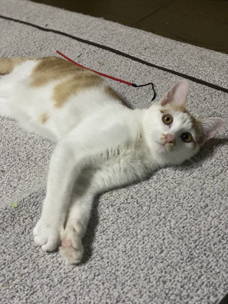 | 特徴(性格など) | 名前チャッシー ちょっと怖がりさんですが遠慮がちの優しい男の子。 鳴き声は小さく、ご飯が欲しい時に泣きます。 他の猫とも仲良しになれます。 健康状態良好です。 検便済み レボリューション済み ワクチン2回済み エイズ白血病検査済み(マイナス) 去勢手術済み |