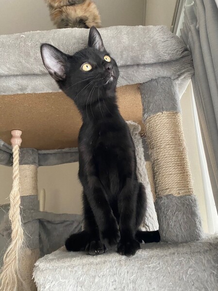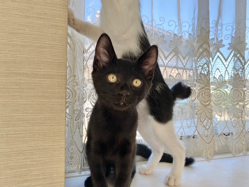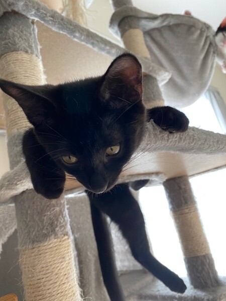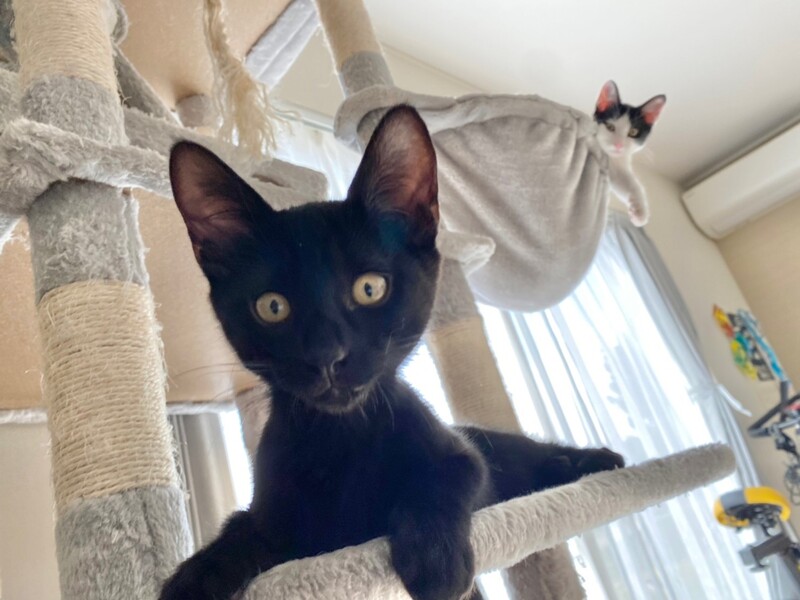 | 特徴(性格など) | 2021.7.24生まれ(推定) 毛色:黒 活発で元気いっぱいの黒猫チュチュ。 全体に白い毛がちらほらあります。 兄妹との追いかけっこが大好き!! 沢山遊んだ後は鳴いて人を呼び、甘える姿にキュンキュンしちゃいます♡ |