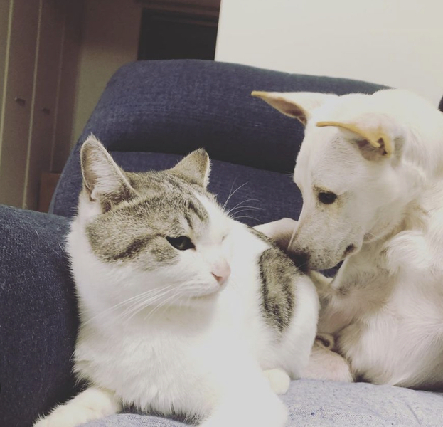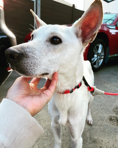 | 特徴(性格など) | まだ遊びたい盛り、色々な事に興味津々です! 特に犬と遊びたいみたいで、近づいて前脚でちょっかいかけます。 預かり宅の猫ちゃんにも、遊びに誘っています!攻撃性はありません。 人が側にいる事が安心のようで、寄り添ってくれます。 苦手なのはケージ、クレートです 1人になるのを嫌がります。(レスキューされて間もないので、慣れてくるかもしれません) |