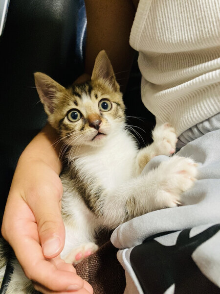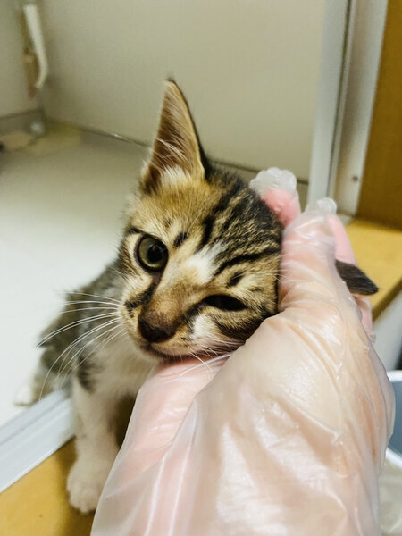 | 里親募集する理由 | ●保護した時の様子:地域猫活動している公園に遺棄され(その周辺の メス猫は全て手術済み、子猫は人馴れしていました。)カラスに襲われて いる所を保護しました。 |