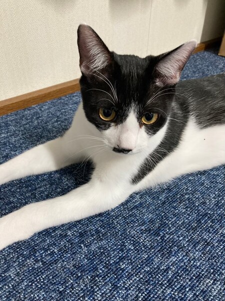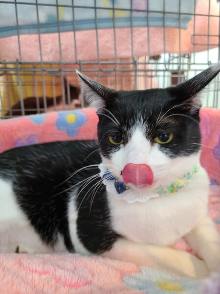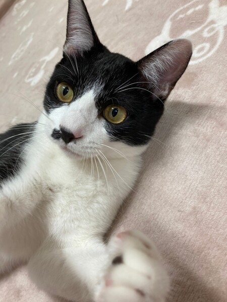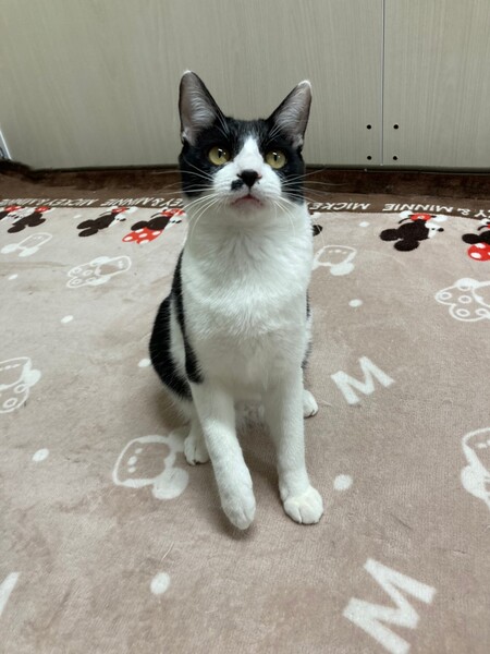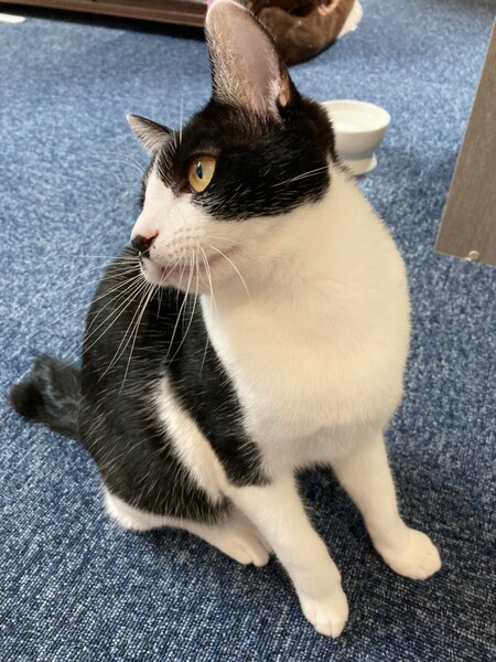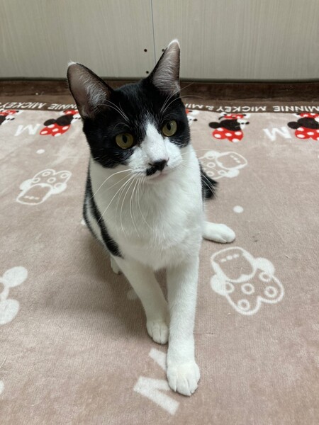 | 特徴(性格など) | 2021.7.1生まれ(推定) 毛色:白黒 いつも人のそばが大好きで甘えてにゃーにゃーいいながら後をついて来ます。 遊びは猫じゃらしの長いものが好きで夢中にになって遊びます。 『デール』と呼ぶとにゃーと返事をしてくれてかわいさ抜群です♡ しっぽは幸運の鍵しっぽ♪ お顔にかわいいチョビ髭さんがあり、 抱っこをするといつまでもゴロゴロ言ってくれます♡ |