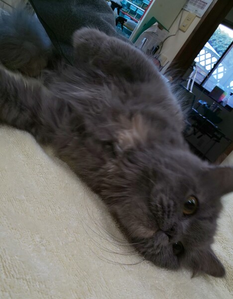 | 特徴(性格など) | 洋サビ、長毛の女の子 人懐っこく甘えたですが怖がりですぐにトイレ裏や敷物の下に隠れてしまいます ごはんを隠れて食べるので痩せぎみですが抱っこもなでなでも好きです (声もかわいいです) |