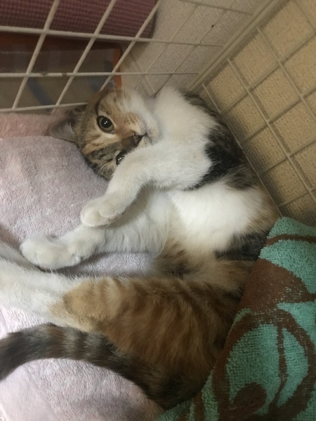 | 里親募集する理由 | 彼の会社倉庫で地域猫として可愛がってる猫ちゃんが子供を4匹産みました。 親猫は今後避妊手術を行う予定です。 4匹中、1匹は亡くなり もう1匹は片目が悪く 私たちの家族に迎えいれました。 残った2匹(姉妹)です。 先住猫がかなり居るため里親募集を試みました。1匹の里親希望でも構わないのですが、仲良し姉妹を2匹ともに家族に迎え入れてくだされる方がいらっしゃれば幸いです。虐待には細心な注意を払っております。よろしくお願い致します。とても可愛い子達です。里親が見つからなければ外に戻すしかありません。幸せな人生を送らせてあげたい気持ちです。 |