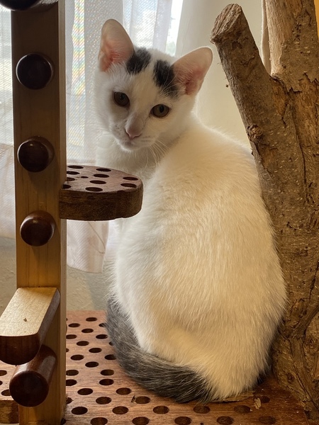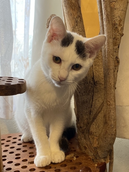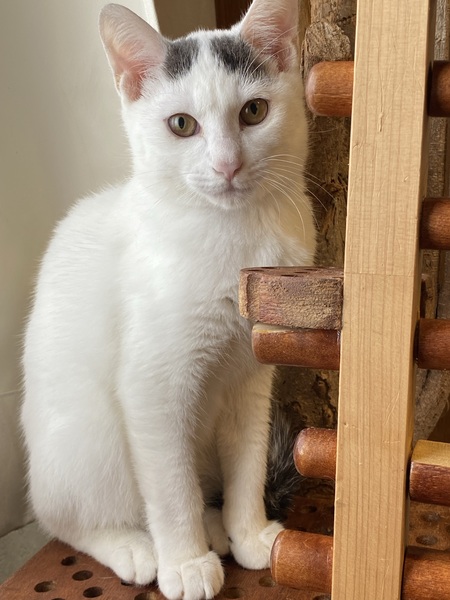 | 特徴(性格など) | 身体は白で、頭と尻尾にグレーが混じっています。 性格はフレンドリーで、抱っこもできます。 穏やかな子だと思います。 エイズ、白血病検査は陰性です。 |