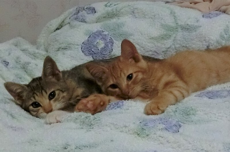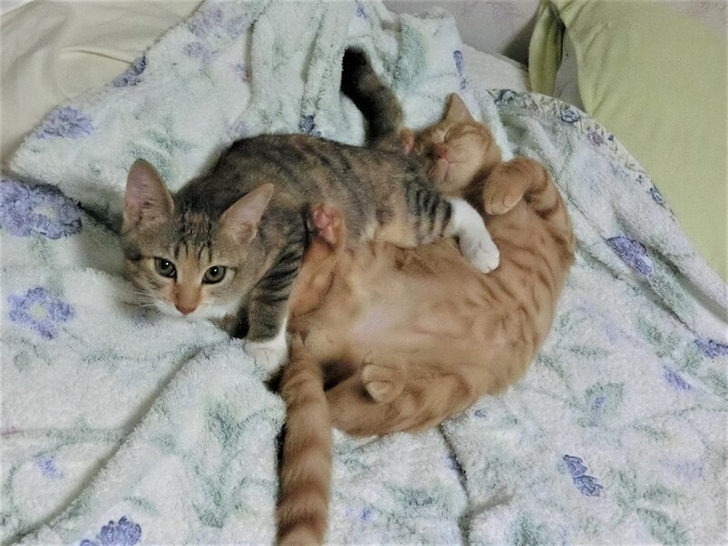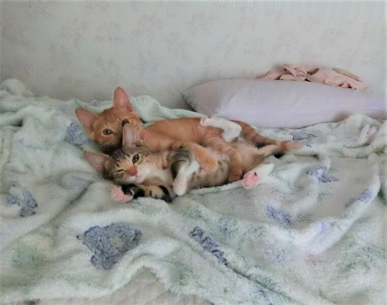 | 特徴(性格など) | 仮名はメケメケ(三毛♀)とチャミ(茶トラ♂) 駆虫、洗浄、トイレの躾が済んでおり、粗相は一度もありません。 保護時の状況からおそらく兄妹、生後4~5か月です。 どちらも初対面から抱っこできますが、メケは初めの内だけ警戒します(さわると喜ぶ) メケメケ(三毛♀) かなり小柄。短毛でスベスベ柔らかな毛質。半端しっぽ 慎重な性格。賢い。猫社会の空気が読める 基本的に静かで、甘える時だけ小さく鳴く 好きな猫や人をペロペロ毛繕いするのが趣味 自分を可愛がってくれる人だけを一途に愛する 大好きな人の足元に待機してグルグル回る 面倒見がよく、アホな兄弟を支えている しっかり運動してるのに下っ腹が出ている 人間の足が好き。勝手に手のひらにもぐりこみ、セルフサービスで甘える チャミチャミ(茶トラ♂) 短毛の中ではやや毛足長めで毛深い。ぬいぐるみの用にフカフカ デカい。手足がぶっといので巨大化間違いなし 犬っぽい素朴顔で性格も犬っぽく大らか おっとりぼんやり物事を深く考えない 甘えるゴロゴロ音が爆音で、ドア越しでも貫通 目が合うだけでゴロゴロ。近くに誰かくるだけでゴロゴロ ウニ~!とよく鳴く。甘えたくて激しく要求する 愛嬌が過去最高クラス。可愛がらないと死ぬ 食い意地が張っている。人の食べ物に手を出す 猫社会の空気が読めない。嫌われても殴られても甘えにいく 月齢相応にすごく活発で、毎日はねまわってプロレスして運動会です。 歴代の子猫兄妹の中でも飛びぬけて仲良しなため、離すのが忍びなく...可能であれば二匹一緒に引き取ってくださる、留守時間の少ない家族形態のお家を希望しております。 |