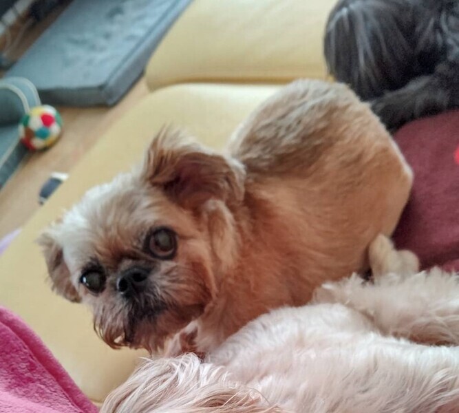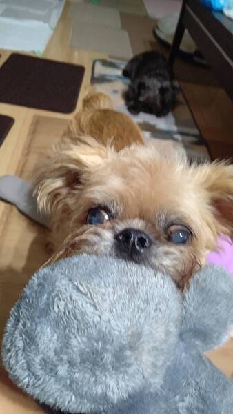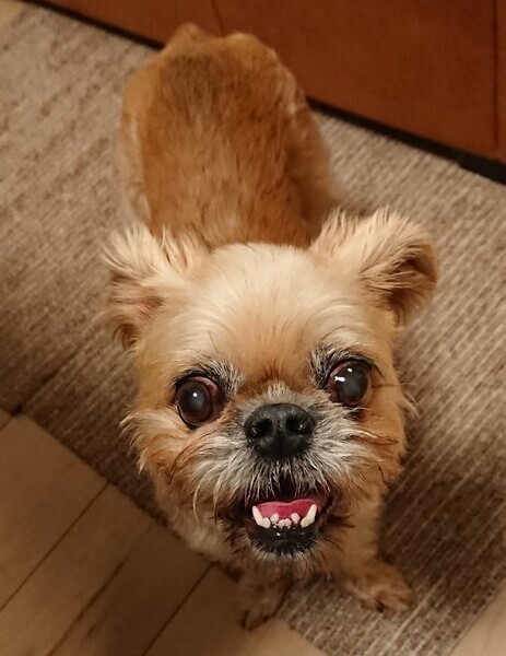| 特徴(性格など) | 愛情たっぷり幸せに暮らしていましたが、どうにもならない理由で飼い続けることができなくなり飼い主さんに託されました。 ブリュセルグリフォンの、りこちゃんです。 5,7キロです。 5月生まれ9歳 11月3日に移動したところですが、 性格抜群! 甘えん坊で、移動してすぐにパパさんにこそっと、くっつきキュン死させました^^ おっちゃんを骨抜きにしちゃいます^^ おもちゃ大好き! たくさんのおもちゃの名前を覚えて、○○持ってきてというと、探して持ってきます。 天才です! お散歩も、元気に楽しみます。 つきくんと姫ちゃんのお母さんです。 甘えん坊なので、たくさん話してたくさん遊んでもらえるとうれしいです」 トイレはシートでします。 グリフォンは、ほとんど抜け毛のない犬種です。 |