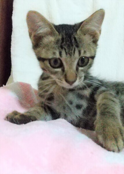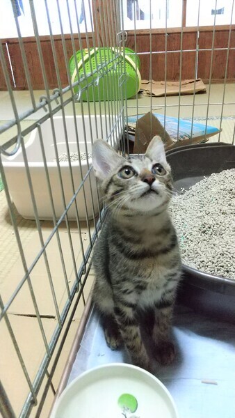 | 特徴(性格など) | 【柄】キジトラ、2か月の男の子です。 先だけがクルっとした可愛いシッポです 兄弟3匹の中で、何でも一番最初に出来るようにります。 とても好奇心が旺盛で賢い子です トイレは大丈夫。 健康で元気に走って食べて遊んでいます。 人間の習慣も見ており、 「もう寝る時間」「遊ぶ時間」ときちんと把握して動いています 本当に甘えっ子で人間が大好きです 表情もとても豊かで、よくしゃべりかけてきます。 キジちゃんとゆっくりと時間を過ごせる方が良いです。 くっついて見上げる顔が愛らしい子です。 |