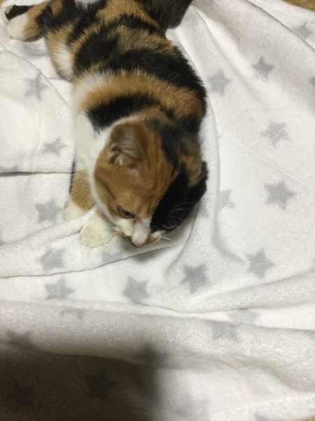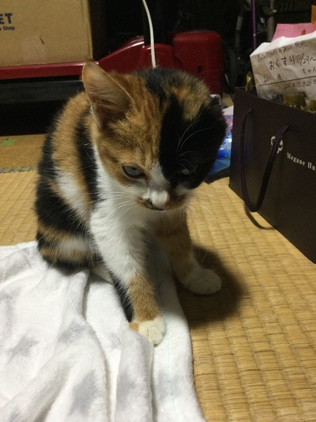 | 特徴(性格など) | とっても甘えん坊子猫三毛猫チャンです。ご飯はよく食べて排便もしっかりします。生後2〜3ケ位(推定)。生死をさまよった時期があったせいかとっても人が好きです。 手のひらで囲んで添い寝するとグルグル音を鳴らして穏やかにおねんねします。 |