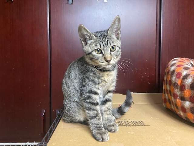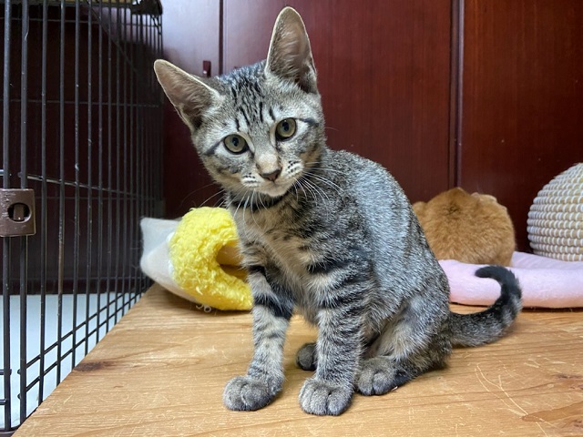| 特徴(性格など) | ☆☆☆ご希望の方は、以下のアンケートフォームにご記入の上、送信してください☆☆☆ ねこ親希望アンケート→ http://chibawan.net/contactform_cat 【猫No】3417 【愛称】おきか 【性別】メス 【年齢】推定3ヶ月(21/08上旬頃生) 【毛色】キジ 【体重】1.52㎏(21/11/02現在) 【状態】不妊手術済、マイクロチップ装着済、ワクチン2回済(21/10/18)、血液(ウイルス)検査済(猫エイズ・猫白血病共に陰性)、ノミ・ダニ駆除済、検便駆虫済、トイレ躾済 【預かり場所】川崎市 【日記】renhana7(インスタグラム) https://www.instagram.com/renhana7 【経緯】千葉県動物愛護センターより引き取り 【性格】運動神経抜群のおてんば娘です。仔猫同士で遊んだり、おもちゃを追いかけたり、楽しそうに遊びます。眠くなると膝の上に乗ってきてゴロゴロと甘えます。食欲旺盛で、現在はドライフードを1日3回食べています。好奇心があり、動きも素早いので脱走には注意が必要です。 【その他】子猫であるため、できるだけお留守番の短いご家庭を希望します。 愛情いっぱいの終生飼養、ネコにあった生活スタイル、完全室内飼育、定期的なワクチン接種などの健康管理をお約束いただけ、迷子防止に細心の注意を払ってくださる、関東近県のご家庭でアンケートに快くお答えいただける方からのお問い合わせをお待ちしています。 なお大変申し訳ありませんが、単身の方や主にお世話してくださる方がご高齢の方のご家庭である場合のお申し込みにつきましてはお断りさせていただきますので予めご了承ください。 |
