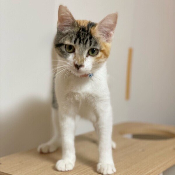 | 特徴(性格など) | お友だち大好き♪「摩耶」ちゃん❤ 人が大好き♪ちょっと控えめだけど、陽気な甘えっコ♪ 現在、ドライフードを24時間の置き餌として栄養補給、水分補給のため一日2回パウチを与えています。 <推定誕生日:9月中頃> |
