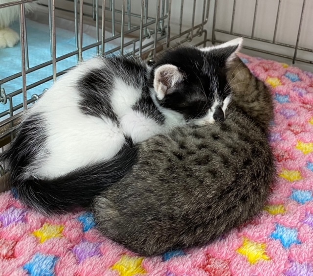 | 特徴(性格など) | ちくわ(きじとら) こんぶ(白黒) 2匹とも遊び激しめですが、とても仲良しさんです。初めはシャイですがすぐに慣れてくれます。 2匹一緒に幸せにしてくれるお家を探しています。 |