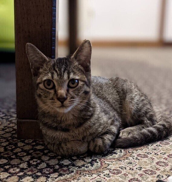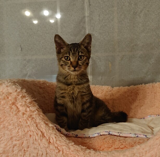 | 特徴(性格など) | ☆名前「きい君」 ☆キジトラ♂ 柄のはっきりしたキジトラでキリッとした顔のイケメンです。 ☆性格 人慣れしています。そして他の猫も大好きです。 我が家の先住猫とも上手に折り合っています。 ヤンチャ盛りで毎日遊び回っています。 名前を呼ぶと返事もして、一つ一つのリアクションが大きくとにかく可愛い子です。 猫ジャラシを投げるとくわえて持って来ます。 遊んでもらいたくて、何度も何度もくわえて持って来て、目の前にポンと置くのが愛らしいです。 ☆健康状態 保護当初(2ヶ月くらいの時)、猫風邪で発熱、喉の腫れがひどく、ご飯が食べられず、一時はもうだめかと思うくらい重篤でした。 動物病院の先生や看護師さんのご尽力、また、新薬が体に合い、命が助かりました。 今はそんな事が嘘のように元気一杯です。 エイズ・白血病ウイルス検査済み(陰性) 第1回ワクチン接種済み 検便2回済み(コクシジユウム、回虫卵プラスでしたが駆虫できました) ノミ、ダニ駆虫済み 12月16日去勢手術予定です。 トライアルは、手術が終わってからになります。 |
