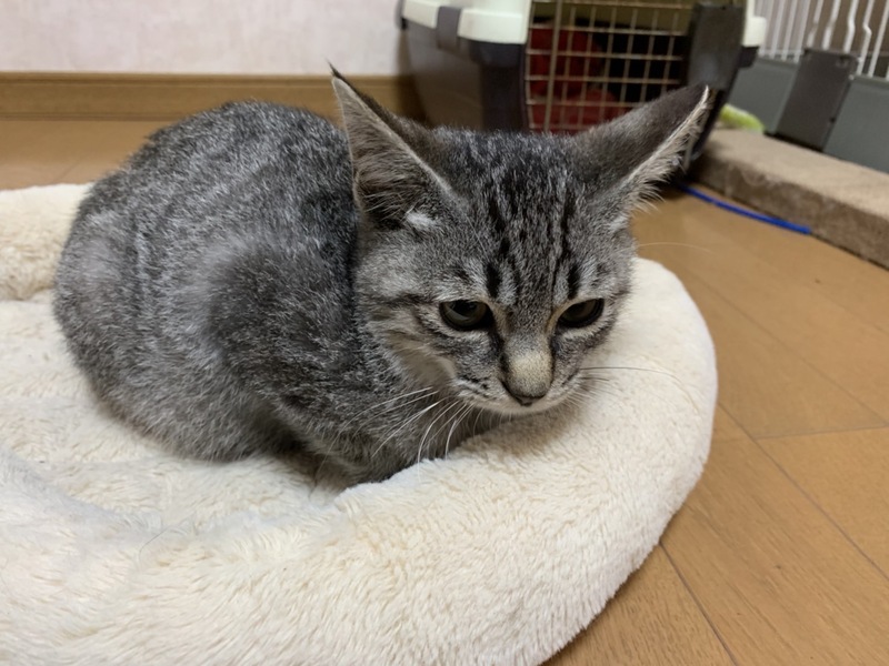 | 特徴(性格など) | キジトラ とても人懐っこく ご飯を要求する姿がとても愛らしい猫です。少しグレーぽいキジトラです。 尻尾はまっすぐ長めよく食べ元気に2匹で遊びます。ウイルス検査 陰性 シラミもおりましたが駆除 ノミダニ駆除 2回予定しています。 |