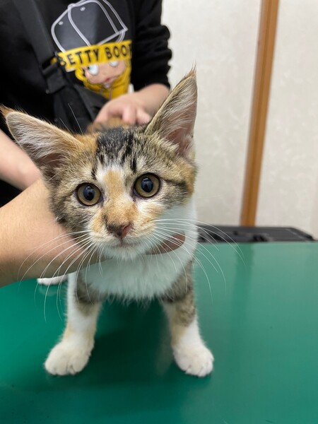 | 里親募集する理由 | 当方、動物病院の院長をしておりまして、当院に通われてる飼い主さんが仔猫を保護されて来院されました。 | ||